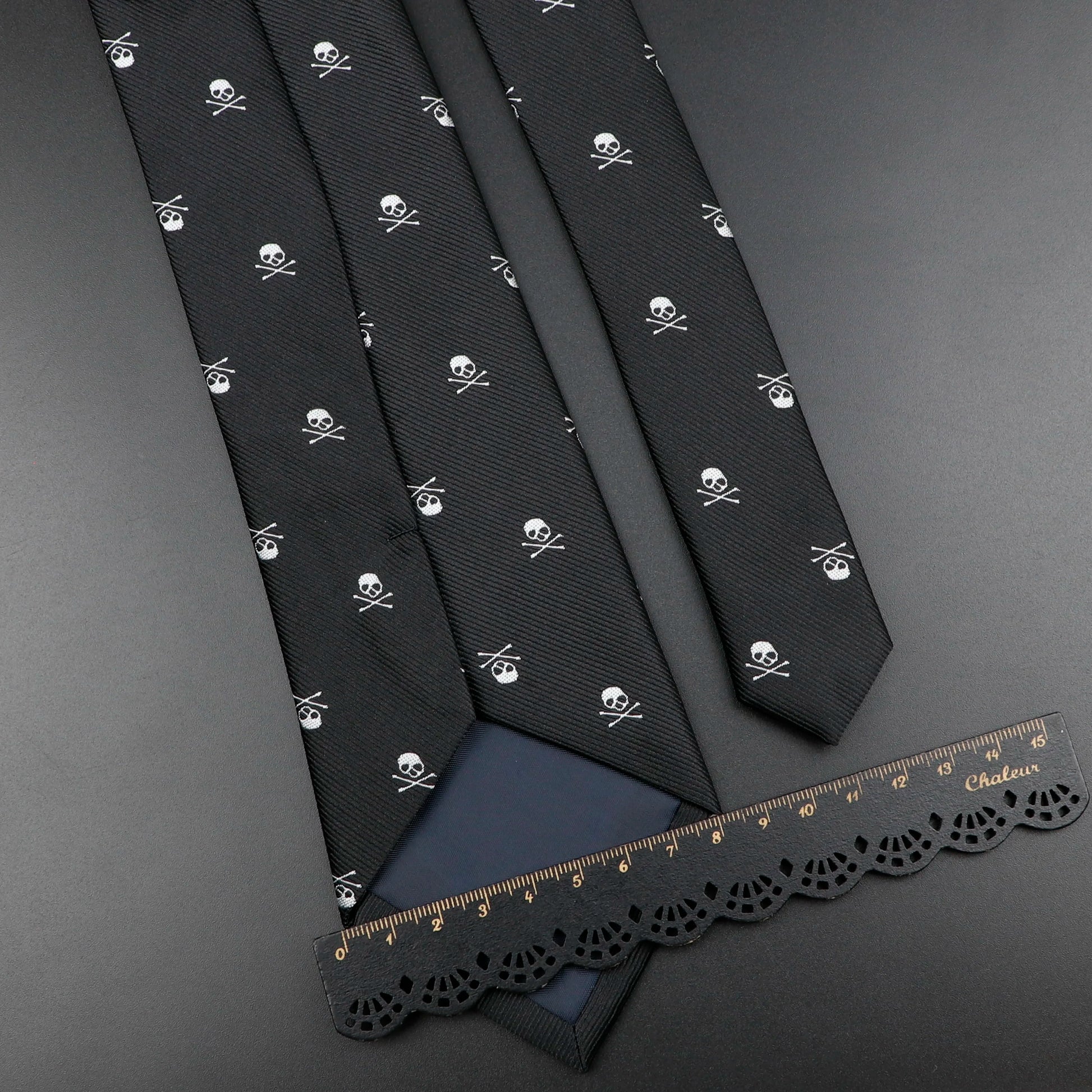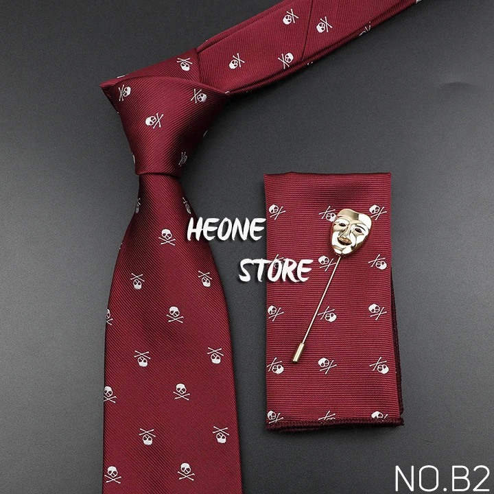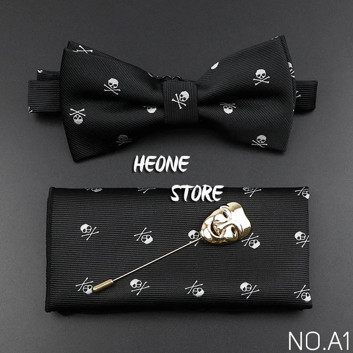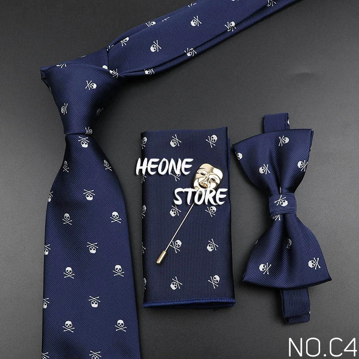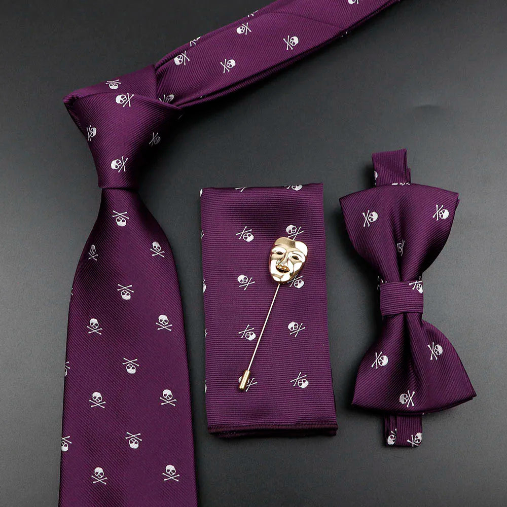 Fashion Men's Skull Tie Set New Design 8cm Polyester Suit Collar Bowtie Handkerchief Trendy Mask Brooch Luxury Wedding Accessory